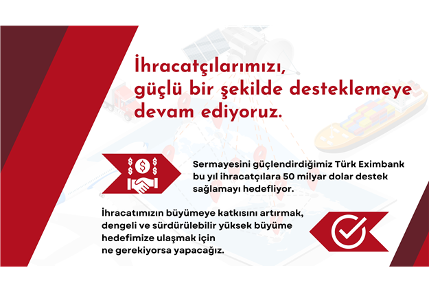 Sermayesini güçlendirdikleri Türk Eximbank'ın bu yıl ihracatçılara 50 milyar dolar destek sağlamayı hedeflediğine işaret eden Şimşek, "İhracatımızın büyümeye katkısını artırmak, dengeli ve sürdürülebilir yüksek büyüme hedefimize ulaşmak için ne gerekiyorsa yapacağız." değerlendirmesinde bulundu.